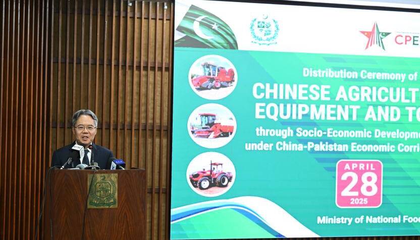 A distribution ceremony for Chinese agricultural equipment was held in Islamabad, attended by Chinese Ambassador Jiang Zaidong and Pakistan’s Federal Minister for National Food Security, Rana Tanveer Hussain. Ambassador Jiang emphasized the importance of China-Pakistan cooperation in food security and criticized U.S. tariffs for undermining global trade and developing countries’ efforts. He reaffirmed China’s readiness to work with Pakistan against unilateralism. Minister Hussain appreciated China’s support, highlighting its positive role in stabilizing the global economy and reaffirming Pakistan’s commitment to multilateralism and shared prosperity.