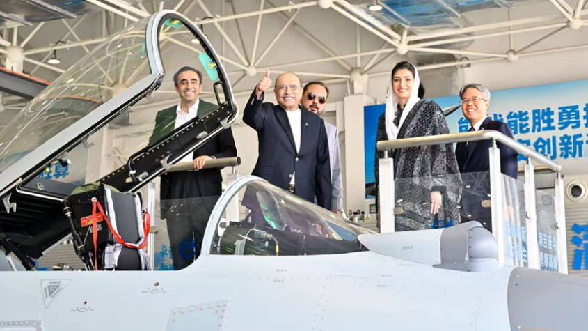 Asif Ali Zardari was briefed on AVIC’s advanced capabilities, including the J-10 fighter jet, the co-production of the JF-17 Thunder with Pakistan, as well as progress in the J-20 stealth 5th-generation fighter aircraft, unmanned aerial vehicles, fully automated units, and integrated command-and-control systems for modern multi-domain operations.