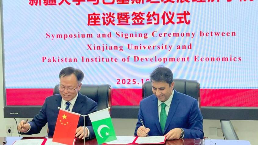 The Pakistan Institute of Development Economics (PIDE) and Xinjiang University signed a Memorandum of Understanding (MoU) in Ürümqi to enhance academic and research collaboration under the China-Pakistan Economic Corridor (CPEC) and the Belt and Road Initiative (BRI). The symposium, chaired by Dr. Liu Zhengjiang, featured remarks from Dr. Ma Xinbin and Dr. Muhammad Nadeem Javaid, who highlighted the importance of academic partnerships for regional integration, innovation, and sustainable development. Both sides discussed joint research, faculty and student exchanges, and policy cooperation. The MoU marks a key milestone in strengthening institutional ties and promoting people-to-people linkages between Pakistan and China through shared knowledge and academic diplomacy.